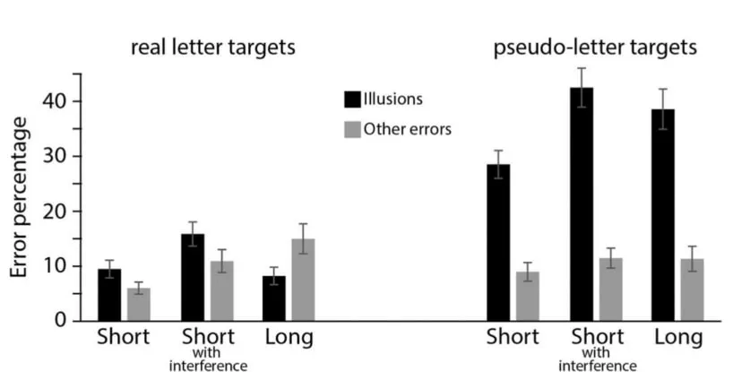 محققان با انجام اندازهگیریهایی در دو نقطهی زمانی، این خاطرات نادرست را از خطاهای درک اولیه متمایز کردند؛ تنها فرصت بروز این اتفاق، ۰/۲۵ میلیثانیه پس از ظاهرشدن حروف بود. اگر خطاهای ادراکشده به بروز اشتباه منجر میشد، میزان این اشتباه همان ۵۰۰ میلیثانیه و ۳ ثانیه بعد خواهد بود. افزایش میزان خطا درطول زمان نشان داد که طی این مدت خاطرات نادرست درحال شکلگیری هستند.