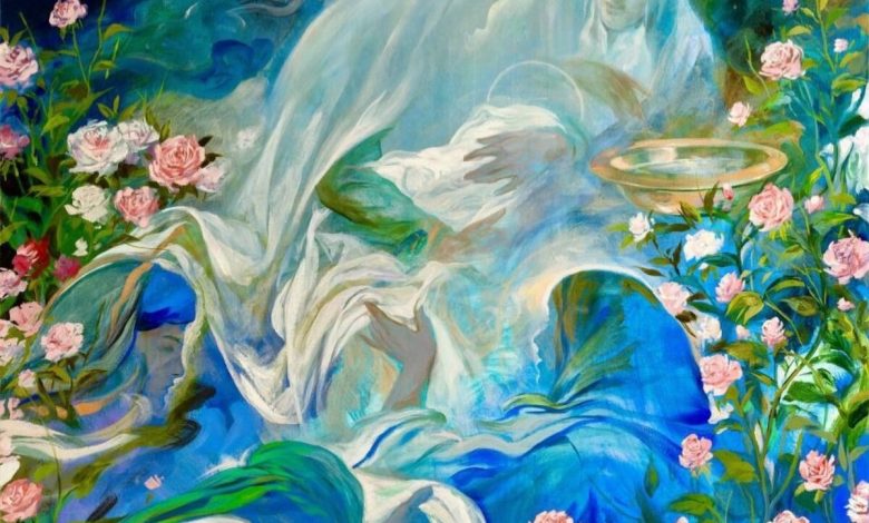 به گزارش خبرگزاری خبرآنلاین به نقل از آنا، روحالامین در توضیح این نقاشی نوشته است: «تابلو نقاشی «مادر غنچهها» جشن تولد ناچیزی است با رنگ، از طرف بنده کمترین به پیشگاه ملک پاسبان حضرت خدیجه کبری سلام الله علیها مادر مکرمه حضرت خیر النساء فاطمه زهرا سلام الله علیها …