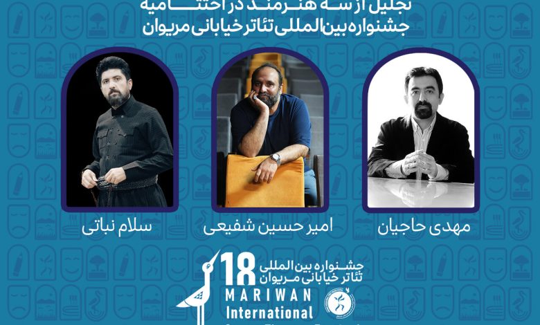 به گزارش خبرگزاری خبرآنلاین به نقل از روابط‌عمومی جشنواره، دبیرخانه هجدهمین جشنواره بین‌المللی تئاتر خیابانی مریوان در نظر دارد از مهدی حاجیان، امیرحسین شفیعی و سلام نباتی به عنوان هنرمند و فعال تلاشگر حوزه تئاتر خیابانی تجلیل شود.